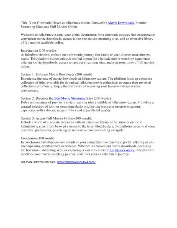 However, as with any online streaming platform, it's essential to understand the nuances of HDHubMovie. This article aims to provide a comprehensive overview of HDHubMovie, covering everything from its features and benefits to potential drawbacks and alternatives. By the end of this guide, you'll have a clear understanding of whether HDHubMovie is the right choice for you.
